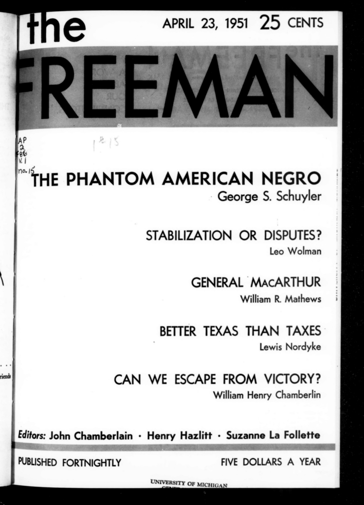 This issue of the Freeman explores the foreign perception of America’s discrmination against black people, General MacArthur’s role in the Korean War, America’s obsession with “winning” wars, and more.