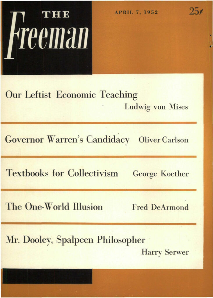 This issue of the Freeman explores leftist economic education, collectivism, the illusion of one-world unity, and more.