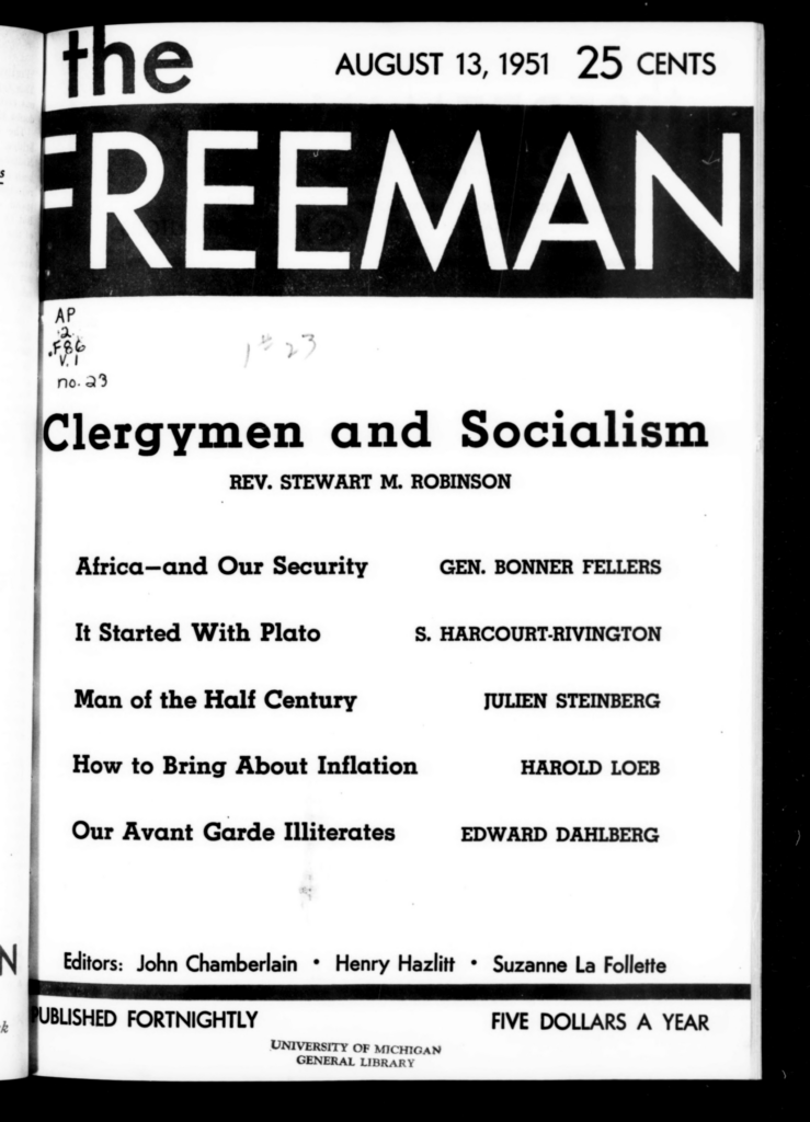 This issue of the Freeman explores southern political issues, African geopolitics, protestants embracing socialism, and more.