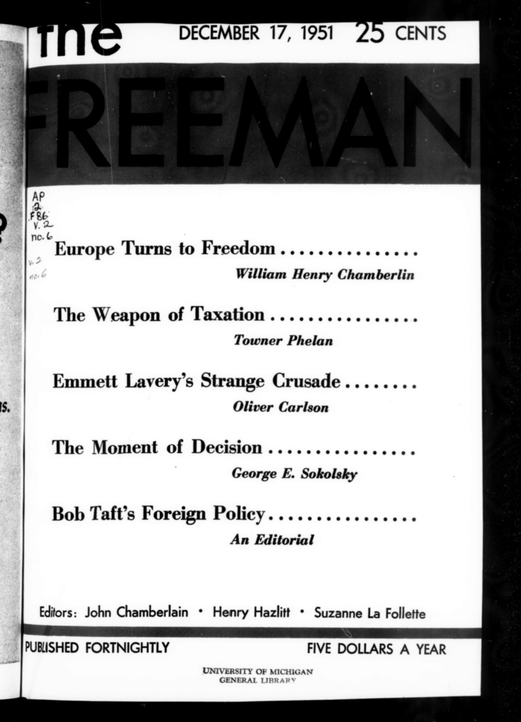 This issue of the Freeman explores Europe’s embrace of liberty, Robert Taft’s foreign policy, weaponized taxation, and more.