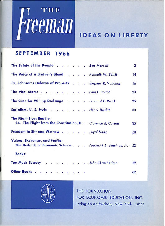 The Freeman: September 1966 Volume 16, 1966